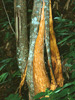 | ニホンミツバチの巣 2010.8.22 武尊山・玉原(古見満雄氏撮影) ハチの出入り口は数カ所あり、蜂蜜欲しさに樹皮を剥いだものと思われます。樹種はブナ。 |