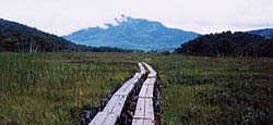 山ノ鼻の目の前には研究見本園もあり、時間のない方や尾瀬ヶ原をまわる体力のない方でも楽しむことができます。時間的には一周20〜30分もあれば十分周れますので寄ってみてはいかがでしょうか。ミズバショウやニッコウキスゲはもちろん、ヒオウギアヤメやイワショウブなど様々な高山植物が群生し、唯一ある池塘にはオゼコウホネが咲き浮島もあります。水深があるせいか、コサナエも生息しています。